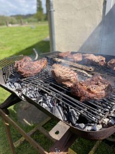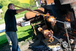 - Porcelet cuit à la broche et ses petites pommes de terre cuite au feu de bois en marinade