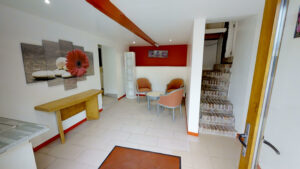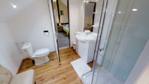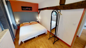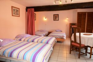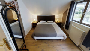 Le gîte l’appartement est un lieu spacieux de 120 m². Il est composé de quatre chambres indépendantes, pouvant accueillir deux à trois personnes chacune, avec leur propre salle de bain privative. Cela permet de loger jusqu’à 11 personnes. Les chambres sont nommées chambre grise, chambre rose, chambre verte et chambre marron.